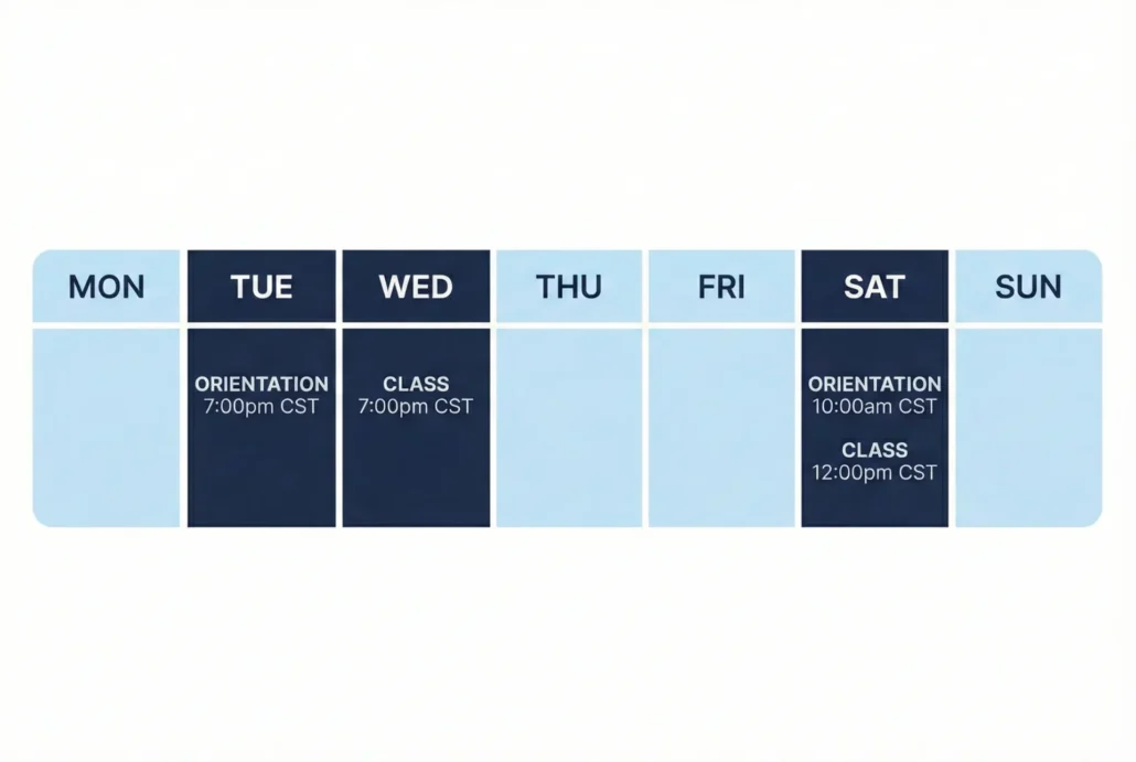 Enrollment is simple and can be completed entirely online. Once you register, you’ll receive immediate access to your class details along with secure login instructions. All course materials are stored in a protected online portal.